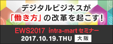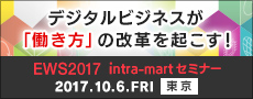 NTTデータ イントラマート社主催イベント「Enterprise Web Solution 2017」の株式会社コサウェル様(弊社 Eco Partner)展示ブースにて、intra-mart アプリケーションのユーザーエクスペリエンスを飛躍的に向上させる「ワークスタイル変革ソリューション」を初公開します。